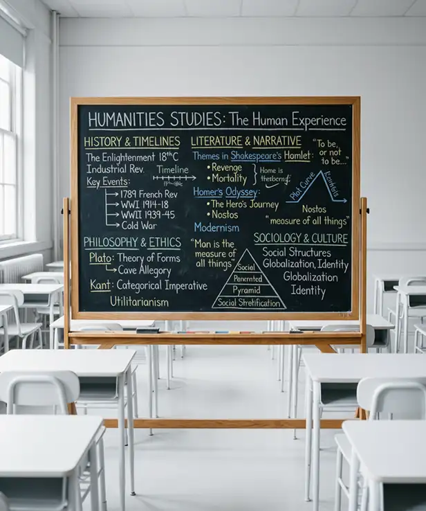This pathway develops strong reading, writing, and analytical skills essential for law, education, media, and social sciences.